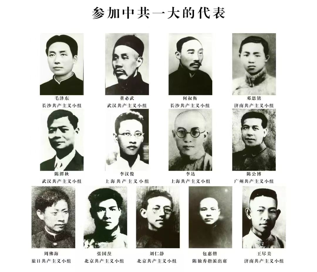7月23日晚,中国共产党第一次全国代表大会在上海法租界望志路106号(今兴业路76号)正式开幕。会址设在李书城、李汉俊兄弟住宅,大家围坐在客厅长餐桌四周,室内没有特别布置,陈设简单,气氛庄重。出席者有上海的李汉俊、李达;北京的张国焘、刘仁静;长沙的毛泽东、何叔衡;武汉的董必武、陈潭秋;济南的王尽美、邓恩铭;广州的陈公博;留日学生周佛海以及陈独秀委派的包惠僧。陈独秀和李大钊因公务在身未出席会议,而在代表们心目中他们仍是党的主要创始人和领袖。