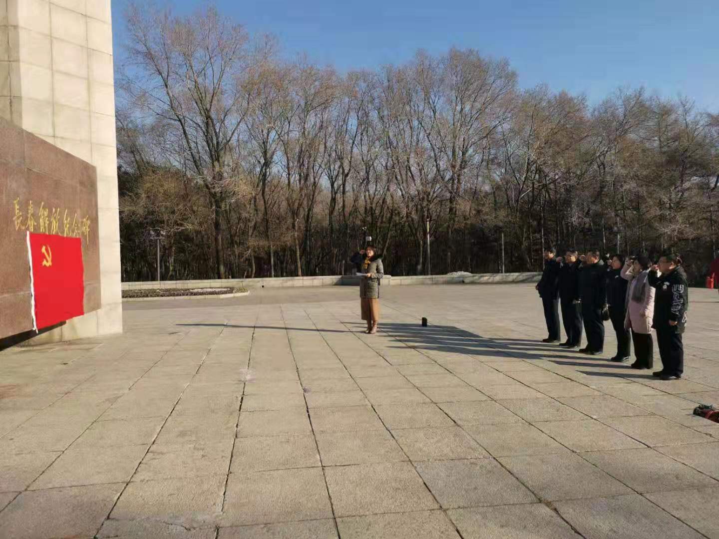 下午1:00整,教务处、支部全体党员冒着凛冽的寒风,来到位于南湖公园正门的长春解放纪念碑前,缅怀革命先烈,重温入党誓词,对党员开展不忘初心、牢记使命、坚定信念、推动发展的主题教育。宁博同志带领大家面向党旗庄严宣誓。党支部书记苏兴志同志向在场党员同志讲述了长春和平解放的过程与长春地下党组织为长春的和平解放付出的巨大努力与牺牲。当大家知道我院于学忠老师的祖父于经五烈士就是其中的一员时,全体党员纷纷表示,要永远铭记为中华民族独立和自由英勇献身的先辈,牢记苦难历史,继承先烈遗志,努力成为一名优秀的人民教师。