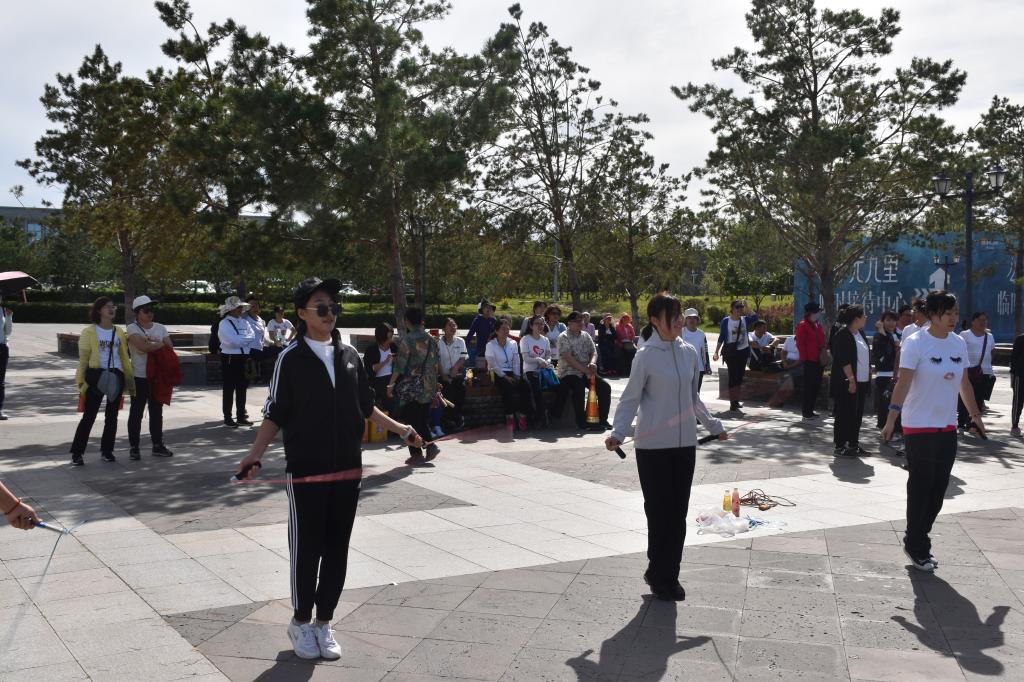 拔河比赛结束后,跳绳比赛在一片欢声笑语中拉开帷幕,各参赛教职工在主持人一声令下后,个个使出浑身解数,都表现出了不凡的实力。女教师身轻如燕,男教师奋勇拼搏,爆发出极好的速度和耐力。现场气氛活跃,比赛进行得热闹而激烈。