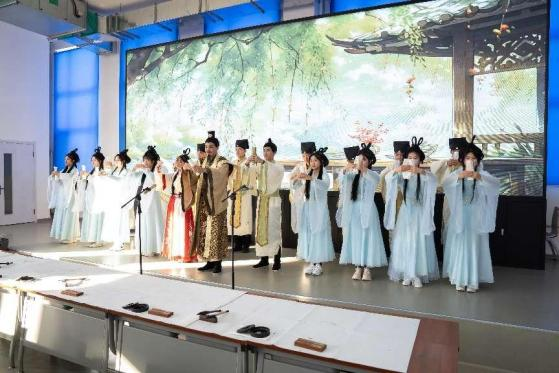 19名学生参演的历史经典诵读诗剧《橘颂》,带领全场师生共同领略辞赋之宗《楚辞》跨越千年时光的丰富文化内涵,展现出屈原身处逆境而矢志不渝的伟大爱国主义精神。