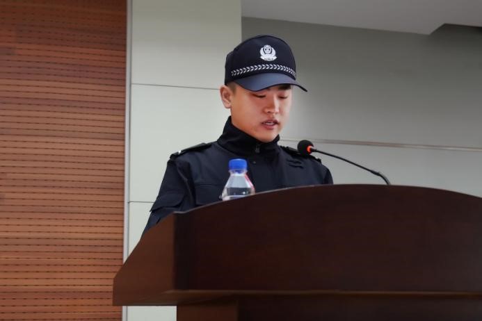 学生二大队24中队司法助理专业刘晨阳同学作为在校学生代表发言