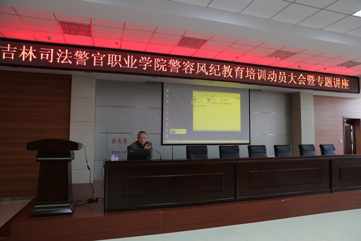 警容风纪教育培训动员大会暨专题讲座在行政楼七楼会议室召开,学院党委成员出席了会议,全院干警参加了会议,会议由副院长杨威主持。会议邀请了司法厅警务督察处副处长田力明做专题讲座,对仪态、服饰、交谈、称呼、握手、敬礼等礼仪标准细节进行详细介绍,使我院每一名司法干警都能把文明礼仪落实到举手投足之间,落实到一举一动、一言一行之中,借以落实从严治警的要求,树立良好的文明形象,提高全院干警整体素质。