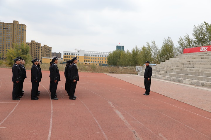 会后,全院干警在运动场进行了队列训练。训练分为五个方队,由副院长张晓明、党委副书记迟文秀、纪委书记张志平、副院长韩广海、副院长杨威分别负责。党委书记李继民和院长刘景辉也加入到训练队伍当中。在队列训练过程中,教官严格施教,口令清晰洪亮,参训干警士气高昂,警容严整,精神饱满,从学院领导到普通教师,每一个人都认真完成每一个动作,展现了人民警察的良好形象。