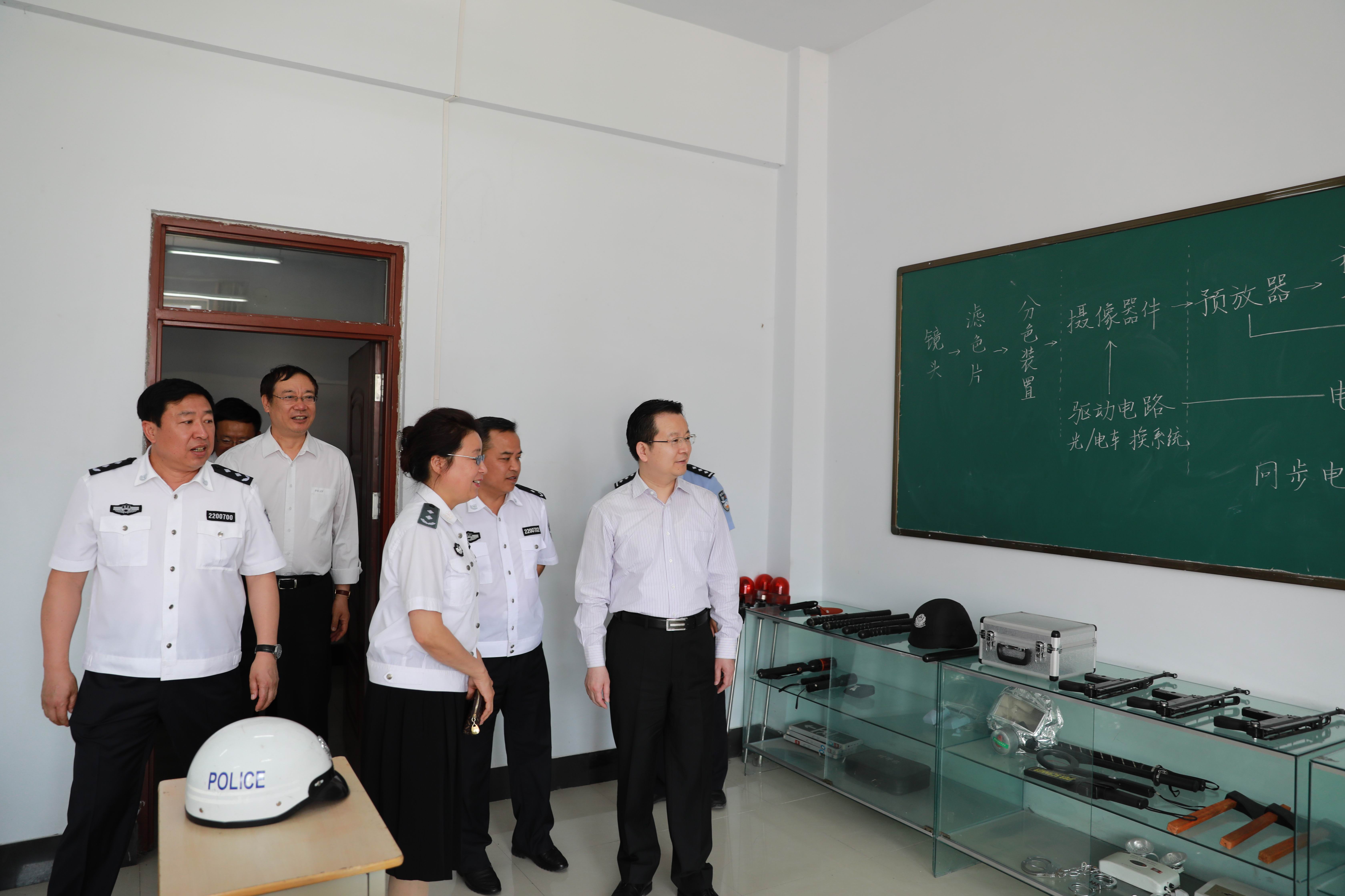张毅厅长实地考察了学院教学楼、实训楼、餐饮中心、体育场和学生宿舍等设施,参观了射击馆、安全防范技术实训室、强制戒毒实验室、刑事侦查技术实验室和心理咨询室,观摩了学生的警务实战技能和警械使用技能课程、模拟法庭和心理测量课程。