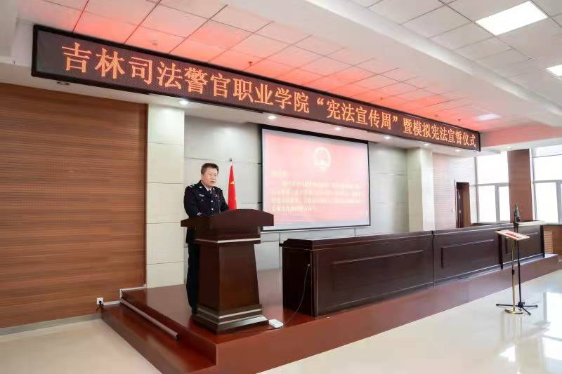 宪法宣誓,字字千钧。学院党委副书记王鸣晖代表学院党委在主持中指出,全院师生要时刻牢记誓词,严格依法履职,学习宪法、遵守宪法、维护宪法权威的自觉性,牢固树立宪法是国家根本大法的观念,学习领会习近平法治思想,吃透基本精神、把握核心要义、贯彻工作要求。学院领导、处级干部要以本次模拟宪法宣誓为契机,深入践行习近平法治思想,切实增强坚定拥护“两个确立”、坚决做到“两个维护”的政治自觉、思想自觉、行动自觉,不断提高运用法治思维和法治方式推动工作的能力,努力做讲求政治的明白人、做懂得法度的规矩人、做干事创业的带头人、做遵守纪律的干净人,在服务党和国家工作大局、加快推进学院高质量发展中做出更大贡献。学生党员积极分子要始终牢记习近平总书记的殷殷嘱托,将铮铮誓言铭之肺腑、见诸行动,把尊法学法守法用法内化为自觉,不辜负党的重托、人民的期望,做到德法兼修、文武双全,成为学院人才培养品质特色。