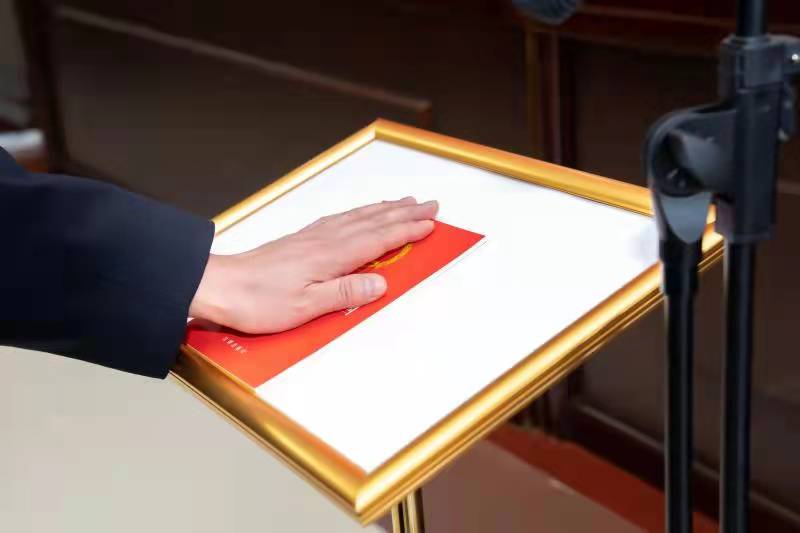 今天参加了学院党委组织的模拟宪法宣誓仪式,我感到非常荣幸。宪法是国家根本大法,是治国理政的总章程,作为一名法学教师,我要在今后的工作中自觉遵守宪法,维护宪法权威,结合日常教学在学生心中种下“学宪法、懂宪法、守宪法”的种子。——青年教师 卢啸宇
