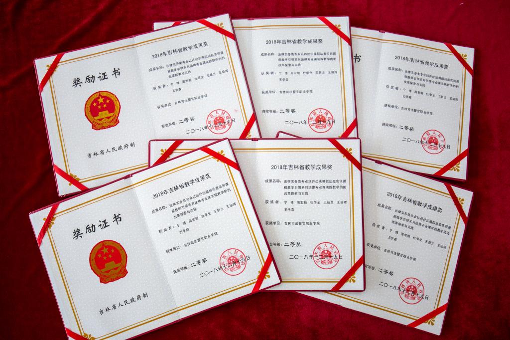 (六)教科研能力不断提升。学院获批法律文秘、刑事执行、行政执行、社区矫正、刑事侦查技术、犯罪心理测量与矫正技术等6个省级特色高水平专业,刑事执行、行政执行、刑事侦查技术、戒毒矫治技术、罪犯心理测量与矫正技术、司法信息安全等6个专业成为“司法行政警察类专业”。启动部门(系部)、教职工、专业、课程、学生等5大主体诊改工作。连续三年完成内部质量保证体系诊断与改进工作,编辑四期《法律职业教育研究》。罪犯心理测量与矫正技术专业团队在充分调研形成系列科研成果的基础上,为监狱服刑人员量身定制心理矫正专业课程,作为省女子监狱服刑人员必修课程。教师发表学术论文928篇,同比增长116%,其中在SCI、EI等核心期刊64篇,出版教材、著作37部,获得专利17项,获得吉林省教学成果二等奖1项。参建法律文秘教学资源库国家级项目,牵头建设刑法原理与务实课程。参建刑事执行教学资源库国家级项目,作为全国唯一一所司法职业院校参加验收答辩并顺利通过。应用法律系学生在第三届全国司法职业院校法律实务技能大赛中喜获二等奖,司法技术系荣获全国高职院校安防技能竞赛三等奖2项,学院获得“优秀组织奖”。