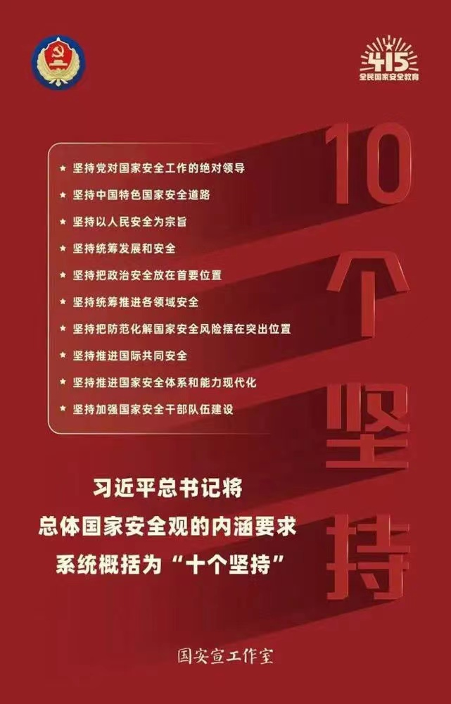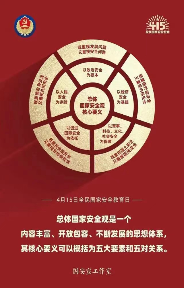 2015年7月1日,第十二届全国人民代表大会常务委员会第十五次会议通过《中华人民共和国国家安全法》,其中规定每年4月15日为全民国家安全教育日。今年4月15日是第七个全民国家安全教育日,宣传主题为:“树牢总体国家安全观,感悟新时代国家安全成就,为迎接党的二十大胜利召开营造良好氛围”。