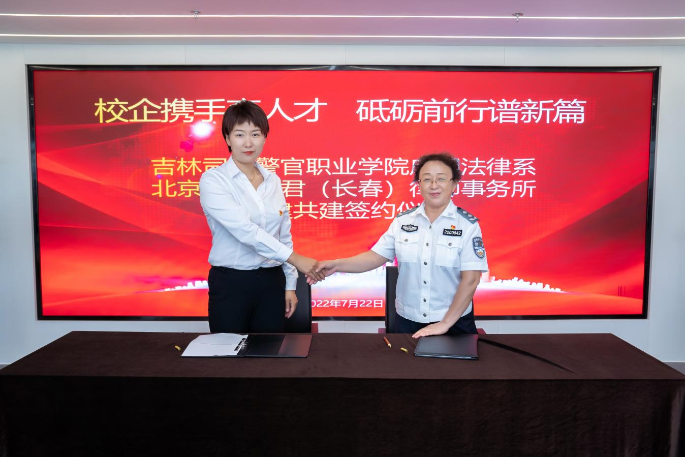 为全面学习贯彻习近平法治思想,贯彻落实省第十二次党代会精神,深度融入长春智慧法务区建设,更好地实现学校高质量教育教学和法治人才培养的长远目标,进一步推动学院服务于法治吉林建设,近日,学校党委书记魏秀云一行参观坐落于长春智慧法务区的省司法厅、长春市司法局公共法律服务联合运行管理中心,与北京君泽君(长春)律师事务所、广东华商(长春)律师事务所、长春把手科技有限公司分别签订合作协议并举行了授牌仪式。
