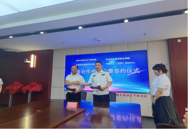 副院长于光与长春社区干部学院副院长周勉征共同签约揭牌。