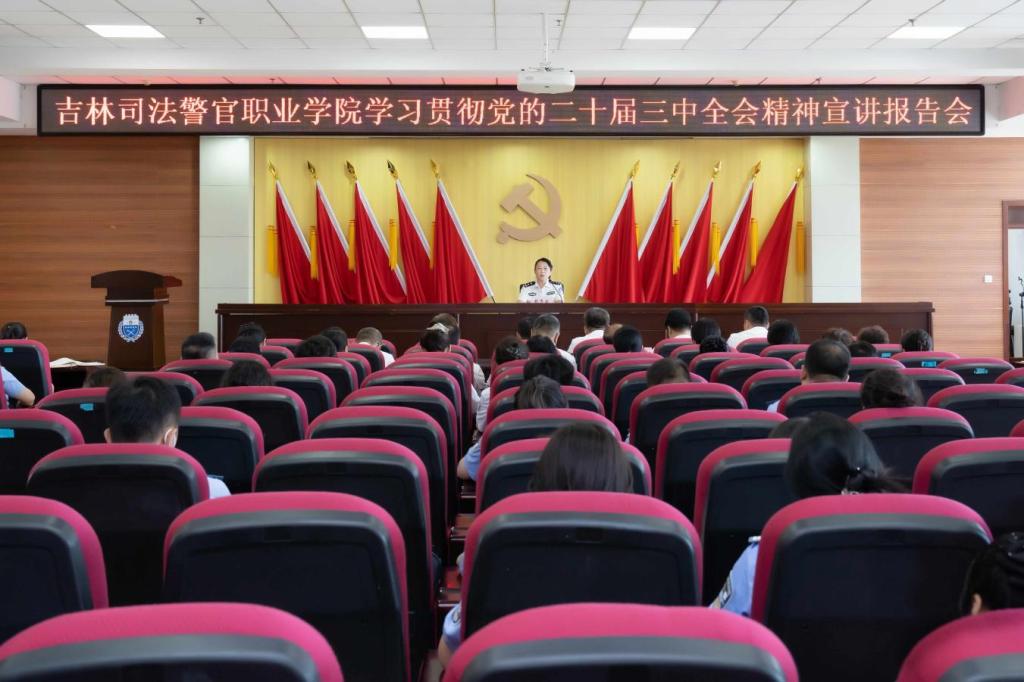 魏秀云围绕习近平总书记在党的二十届三中全会上的重要讲话和全会《决定》,要求广大教职工要深刻领悟“两个确立”的决定性意义,增强“四个意识”、坚定“四个自信”、做到“两个维护”,牢牢把握教育的政治属性、战略属性、民生属性,切实推动全会重大决策部署在校园内落地见效,把全会精神落实到学院的各项重点工作中,奋力谱写学院事业高质量发展新篇章,在中国式现代化的壮阔征程中不断彰显教育的价值与贡献。一是要深化对统筹推进教育科技人才体制机制一体改革的思想认识,进一步增强责任感和使命感,争做教育科技人才体制机制一体改革的先行者、推动者和示范者。二是要深化教育综合改革机制,坚持党委领导、校长负责、民主管理、依法治校和社会参与的治理结构,深入实施“时代新人铸魂工程”,大力推进具有警院特色的品牌建设。三是要深化科研体制改革,围绕助力我省高质量发展和法治吉林建设,推动创新教学团队和科研团队建设,打造具有影响力的标志性成果。四是要深化人才发展体制机制改革,坚持党管人才原则,加强思想政治引领,建立健全师德师风建设长效机制,加快推进产教融合,全方位提升学院办学治校能力。