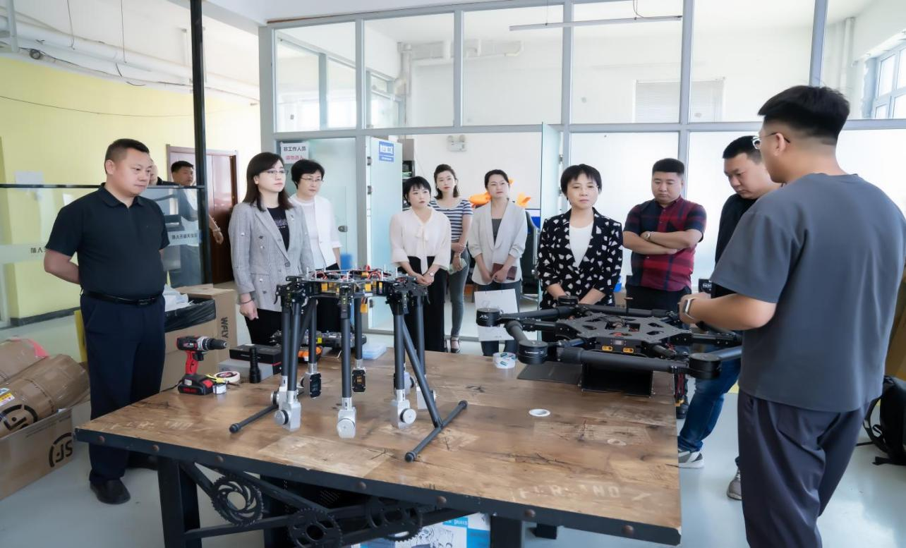 在吉林省彬生蓝航天际无人机科技有限公司,张永咏书记一行在李世政董事长的陪同下,参观了无人机培训基地、飞行表演区、日常训练场地、室内模拟器、教学区域以及无人机组装生产线,企业相关工作人员重点介绍了公司在智能无人机领域的核心技术、人才需求及未来发展规划。