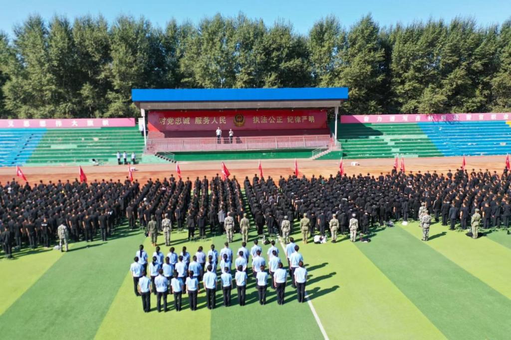 雄壮的国歌中,五星红旗升起,与会师生肃立行礼,满怀对祖国的热爱与敬意。张永咏以《仰望国旗飘扬传承奋斗精神——让青春在实干中闪光》为题,带领广大师生回顾了中国人民经过14年不屈不挠地浴血奋战,取得了中国人民抗日战争伟大胜利的艰苦历程,深刻阐释了中国人民在抗日战争的壮阔进程中孕育出伟大抗战精神。她勉励全体新生,要铭记历史、缅怀先烈、珍爱和平、开创未来。一是要坚持学思用贯通、知信行统一,将党的创新理论武装与专业学习、警务训练结合起来。二是要坚持理论与实践相结合,在实践中检验所学、增长才干,在服务群众中厚植为民情怀、提升职业素养。三是要坚持从小事做起、从身边做起,以实际行动践行“忠诚、为民、公正、廉洁”的职业操守。四是要坚持涵养初心、强化使命担当,秉承“诚智律毅”的校训精神,展现出警院学子“肯吃苦”的习惯,“不服输”的品格。