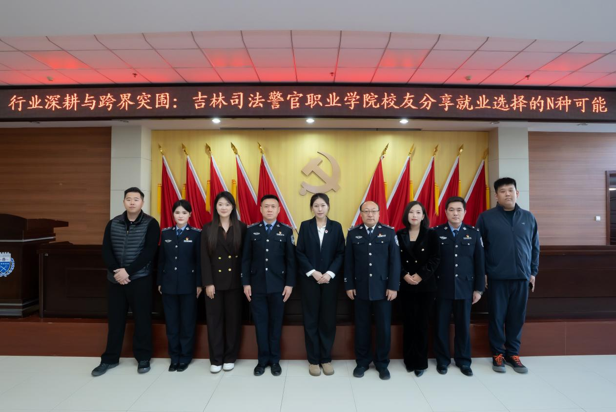 永吉县司法局西阳司法所所长范洺畅校友以亲身经历,从司法所“人民调解、社区矫正”的日常工作,到“大一打基础、大三定方向”的考公攻略,为同学们今后的学习生活和未来就业提供指导和帮助;吉林阳光博舟律师事务所律师夏悦童校友从“理解”、“目标”和“坚持”等视角,与同学们分享了成功经验;吉林省仕合教育新媒体运营部部长徐铭校友分享了题为“贫穷赠予我的礼物”成功创业经验,以“尊严靠自己挣来”“向下扎根才能向上生长”等深刻领悟,激励同学们把握现实、立足实际、扎实奋斗;广东广和(长春)律师事务所律师王珏校友以“青春之名,赴法治之约”为题,从“藏蓝的底色,滚烫的青春”警院生活,到“我走过的路,想讲给你听”,与同学们分享了成功经历。