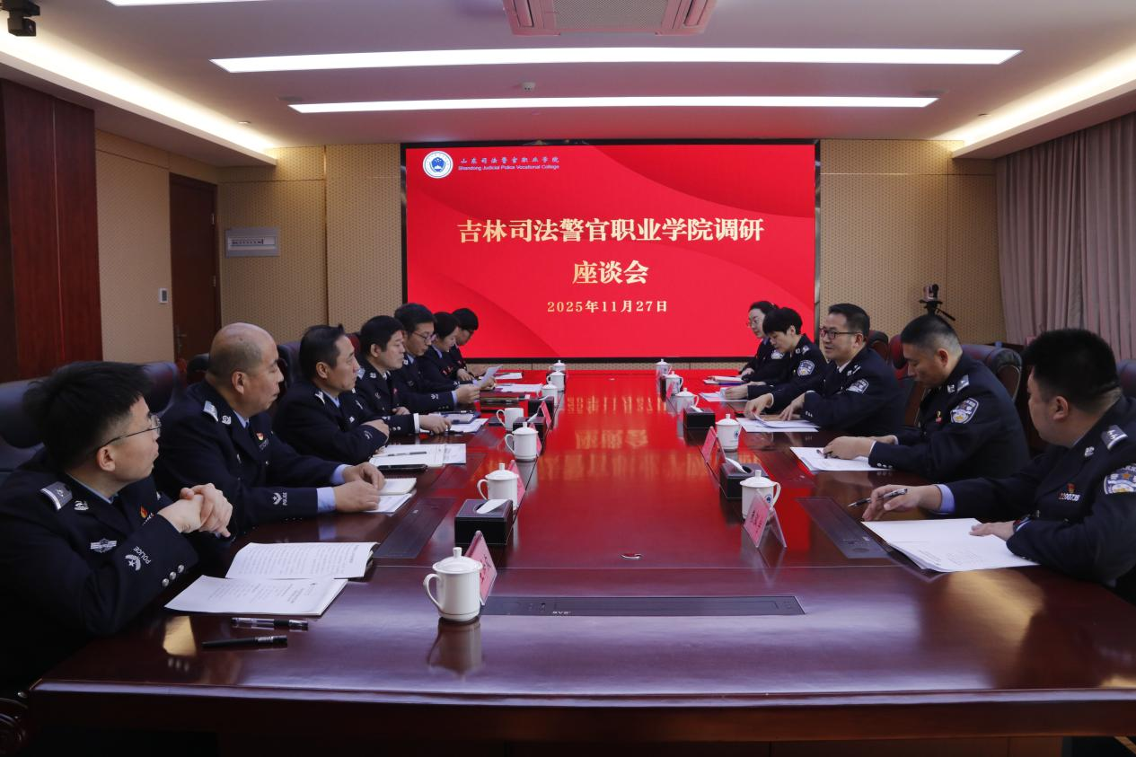 山东司法警官职业学院调研期间,学院调研团队实地参观了校情动态管理中心、校史馆、消防实训室、监狱文化实训室、刑事侦查实训室等场所,通过现场观摩、互动交流等方式,详细了解其在专业人才培养、校园文化建设、实习实训模式等方面的实践成果。双方聚焦重点工作,就党建与业务深度融合的实践路径与成效、专业建设与产教融合战略、教师发展机制建设、智慧校园与数字能力建设路径等方面展开全面交流,为全面落实立德树人根本任务、提升办学治校水平提供了新思路。