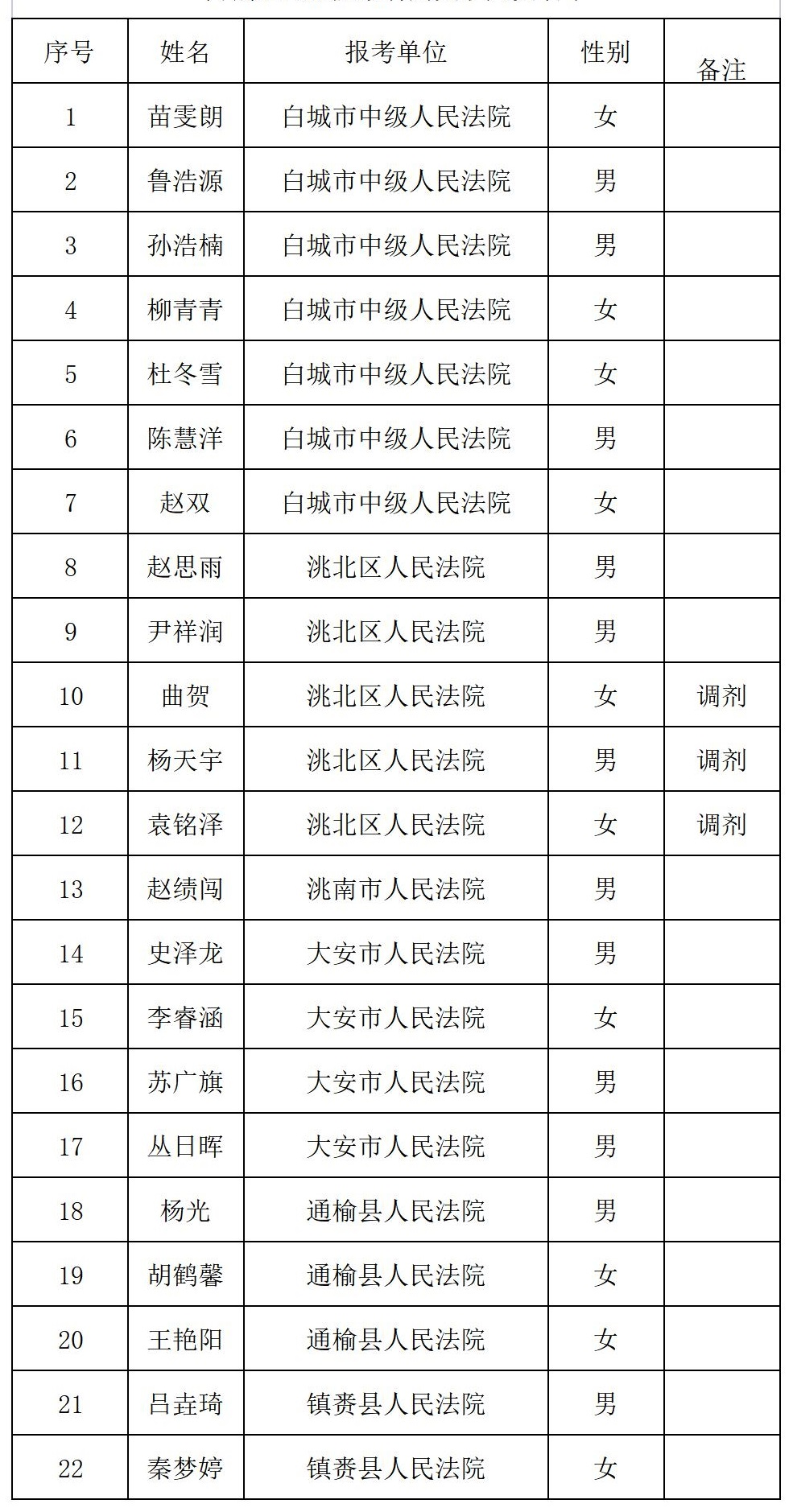 根据《2022年白城中院聘用制文职人员补充招聘工作实施方案》的有关规定,经过笔试、速录技能测试、面试、体检、考察等程序,现对2022年白城地区拟聘用的文职人员面向社会进行公示。公示期为2022年9月13日至9月19日,欢迎社会各界监督