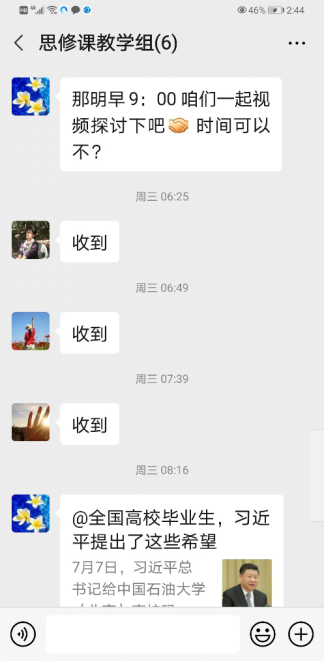 为了充分发挥高校思政课核心课程、灵魂课程、关键课程作用,统一教学内容、统一教学方案、统一教学要求,切实保证思政课堂成为学习宣传习近平新时代中国特色社会主义思想的主渠道主阵地,集思广益,交叉融合,推进提升思政课教学质量,7月29日上午9:00,思政部思想道德修养教研室召开了《思修》课线上视频假期第一次集体备课会。会议由思想道德修养教研室主任姜品竹主持,全体思修课教师参加了此次会议。