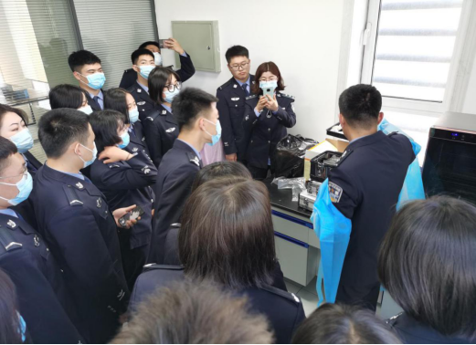 法医物证鉴定负责人为师生们讲解DNA亲子鉴定等项目的原理和用途,并由实验室人员演示气相色谱仪、液相色谱仪、气相色谱质谱联用仪、液相色谱质谱联用仪、红外光谱仪等仪器的操作方法等。