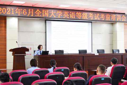 6月9日下午,教务处在行政楼7楼报告厅召开全国大学英语等级考试考前培训会,面向70名监考教师进行考务培训。副院长张晓明出席会议,会议由教务处副处长主持。