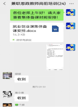 按兼职思政课教师岗前培训计划方案的安排,第二轮岗前培训按部就班的进行。在暑假期间,兼职思政课教师在知到平台上进行了有关教学课件的学习和编写。2021年8月25日上午,思想政治理论课教研部召开了兼职思政课教师就业创业课岗前培训会第一次集体备课研讨会。此次备课会上,思想政治理论课教研部王晓骞副主任总结了暑假期间各位教师的备课情况,提出一些新要求,布置了本学期的第二轮岗前培训内容。