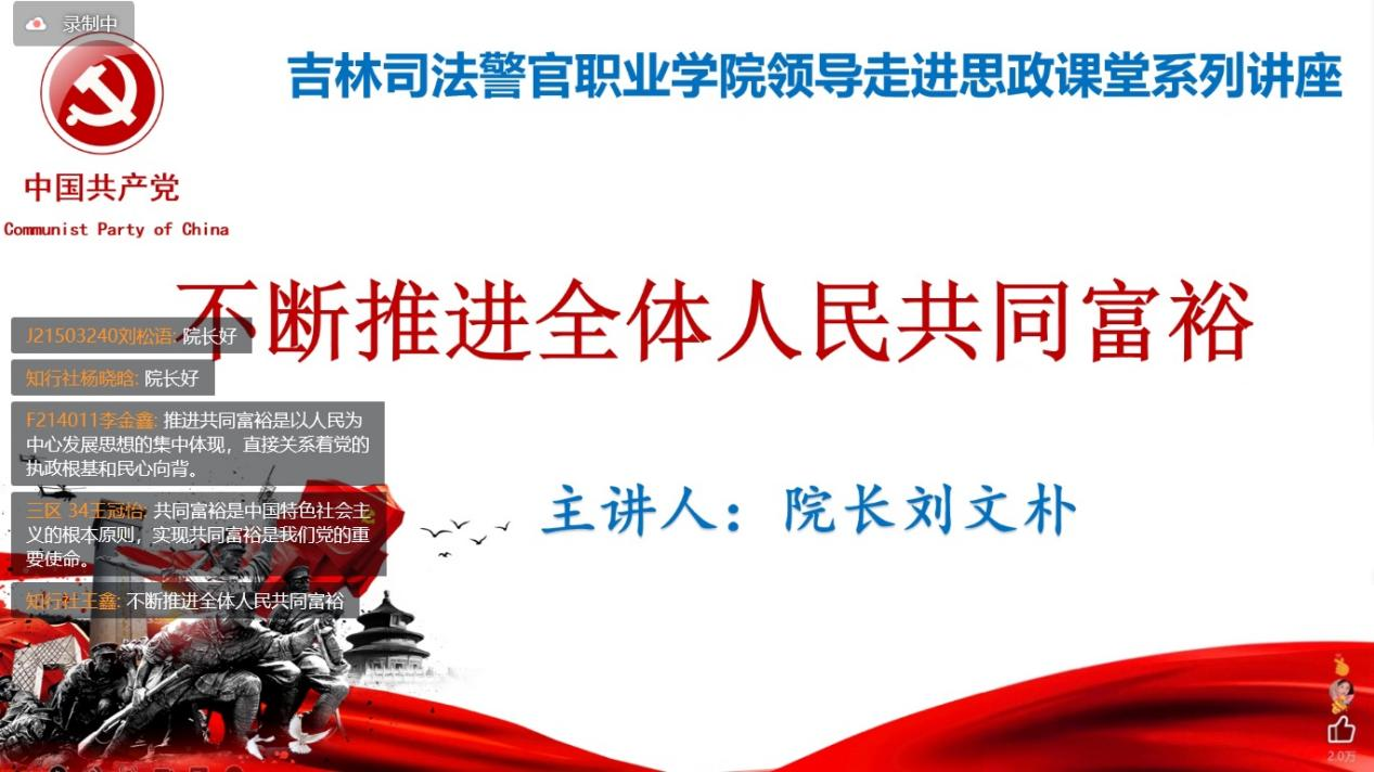 为深入学习贯彻习近平总书记关于全体人民共同富裕的重要论述,充分认清实现共同富裕的重大意义,深刻理解共同富裕的基本内涵及实现方式,扎实推进共同富裕的伟大实践,5月25日下午,学院党委副书记、院长刘文朴为师生讲授思政大课《不断推进全体人民共同富裕》。