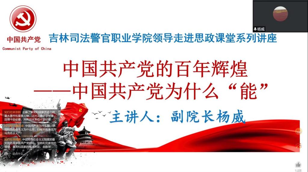 为深入学习贯彻落实习近平总书记关于“四史”的重要论述和在党史学习教育动员大会上的重要讲话精神,激励、引领青年师生“学党史、感党恩、听党话、跟党走”,5月31日下午,学院副院长杨威为师生讲授思政大课《中国共产党的百年辉煌——中国共产党为什么“能”》。