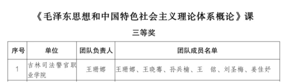 在“精彩一门课”评选中,姜品竹团队的《思想道德与法治》课获一等奖,王珊娜团队的《毛泽东思想和中国特色社会主义理论体系概论》课获三等奖。