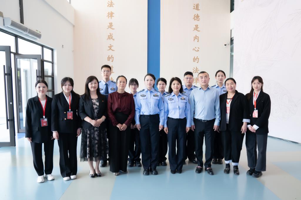 在学校马克思主义学院教师孙兵楠、张梦雅的讲解下,与会人员参观了学校“润德尚法”主题教育实践中心。