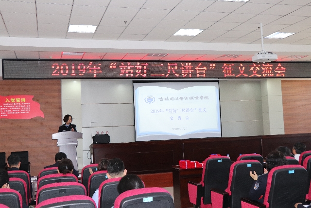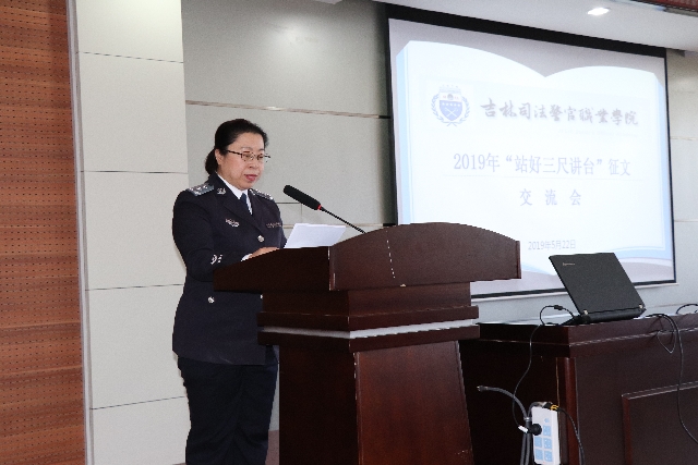 此次交流的征文共有9篇,8篇具有代表性的获奖征文和1篇专家代表的征文进行了现场交流,分别是司法技术系张威老师的《师道人生——作学生的重要他人》、思想政治理论课教研部王晓骞老师的《站好三尺讲台 坚持做到“六要”——关于加强我院思想政治理论课建设的意见》、基础教研部姜禹老师的《铸魂立根献教育 三尺讲台写青春》、监狱警察系王姝丽老师的《站好三尺讲台》、基础教研部马冬艳老师的《站好三尺讲台——谈谈< 法律逻辑学>教学改革》、监狱警察系周影老师的《站好三尺讲台——新形势下如何做好高职学校教师》、警察体育教研部冯鹤老师的《不忘体育强国梦想 牢记教育立德使命》、应用法律系王园园老师的《师者,不忘本心》以及专家评委代表应用法律系刘桂艳老师的《站好三尺讲台 未来法律人的奠基石》。教师通过对师者教育理念的阐述、教学经验和教学方法的总结与反思,对学院课程的教学改革提出了建设性的观点,情感真切自然,确是发自师者的肺腑之言,充分体现了我院教师努力进取、积极向上的精神风貌和专业素质。