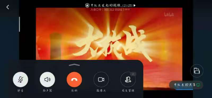 学生2大队大队长冯宇铭召开学生线上会议,通过播放《大抗战》纪录片的形式,教育同学们要牢记过去,学习先进精神,立足现在,锻炼完善自我;展望未来,肩负历史使命。