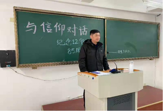 为纪念“12•9”运动八十五周年和我国第七个国家公祭日,弘扬革命传统、激发爱国热情、凝聚青年人心、展现青春风采,同时培养青年良好的学习、生活习惯,磨炼青年坚强的意志品质,展现新时代吉司学子“超越自我,追求卓越”的精神面貌,12月9日,院团委组织各学生大队开展以“与信仰对话”为主题,纪念一二·九运动85周年爱国主义教育纪念活动,会议由各学生大队大队长主持召开。