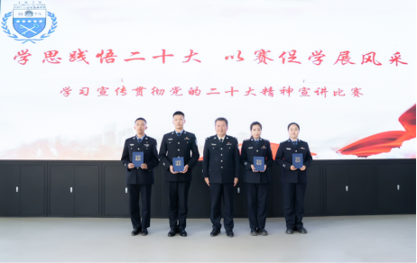 为进一步教育引导师生高举习近平新时代中国特色社会主义思想伟大旗帜,深入学习宣传贯彻党的二十大精神,提高广大师生的政治素养和思想觉悟,3月31日,学院团委举办“学思践悟二十大,以赛促学展风采”学习宣传贯彻党的二十大精神主题宣讲比赛。学院党委书记魏秀云,党委副书记王鸣晖,副院长杨威,以及全体学生辅导教官出席本次活动,各院部负责人担任评委。