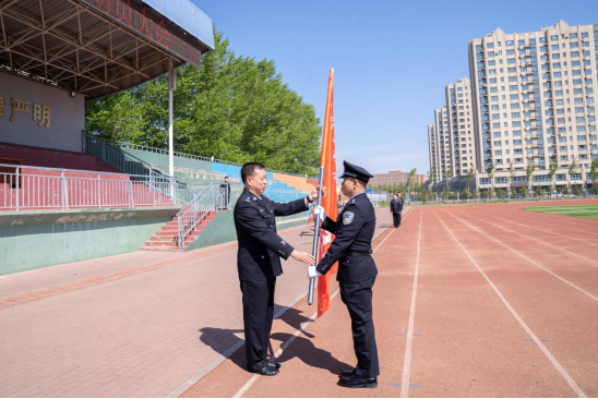 党委副书记王鸣晖,副院长杨威、于光为警训营授旗