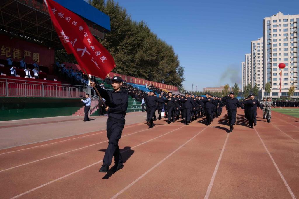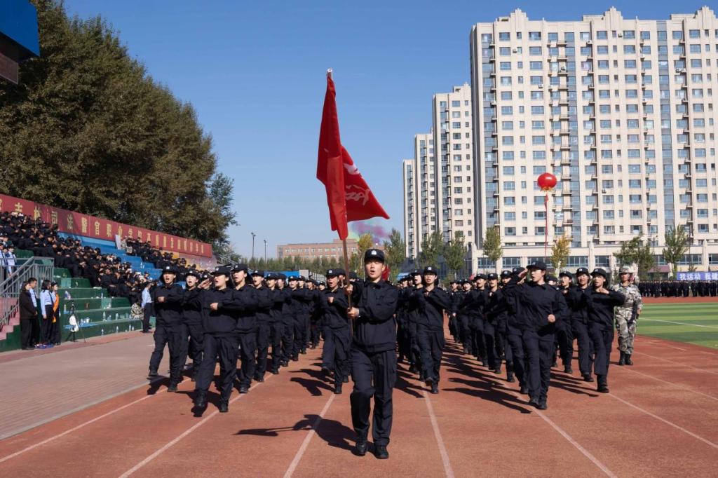 随着院长刘文朴一声号令,2024级学生开学典礼暨警训成果汇报会正式开始。新生们依次走向主席台接受检阅,以挺拔的身姿、整齐的步伐、饱满的精神、嘹亮的口号,充分展现出新警学员的良好精神风貌,为为期一个月的警训画上了圆满的句号。