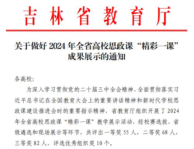 近期,由省教育厅组织开展的2024年全省高校思政课“精彩一课”教学展示活动落下帷幕。马克思主义学院参赛教师孙兵楠、赵贺男分别荣获一等奖、二等奖,实现了重大突破。