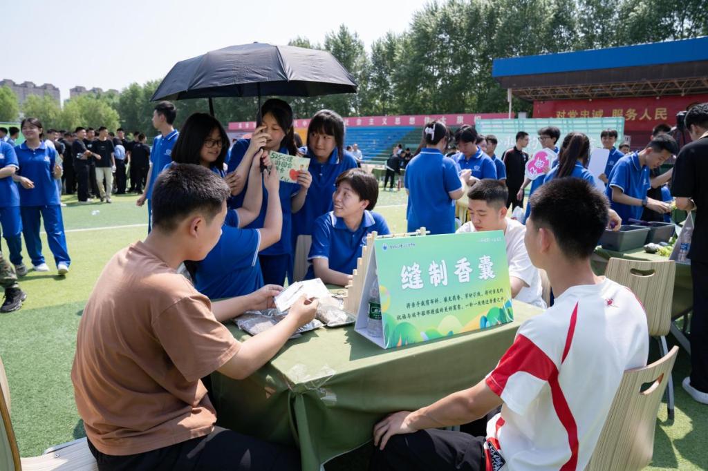 活动以“心承古韵”为脉络,以“五育融合”为内核巧妙设计游园会各环节内容。在活动中,“汉服礼仪”“传统故事盲盒”“心理知识问答转盘”“传统游戏挑战”等活动在汲取传统文化精华的同时,让学生深入地了解自己的需求,更好地释放压力、关爱自己;“八段锦心流体验”“情绪地图”“投壶活动”等心理拓展游戏中,通过传统运动唤醒身心活力,让学生感到身心更加放松;“五谷画”“种植体验”“缝制香囊”等活动,让学生在体验劳动中培养生活技能,体会付出和收获的意义,增强心理韧性,学会在竞争与合作中成长。