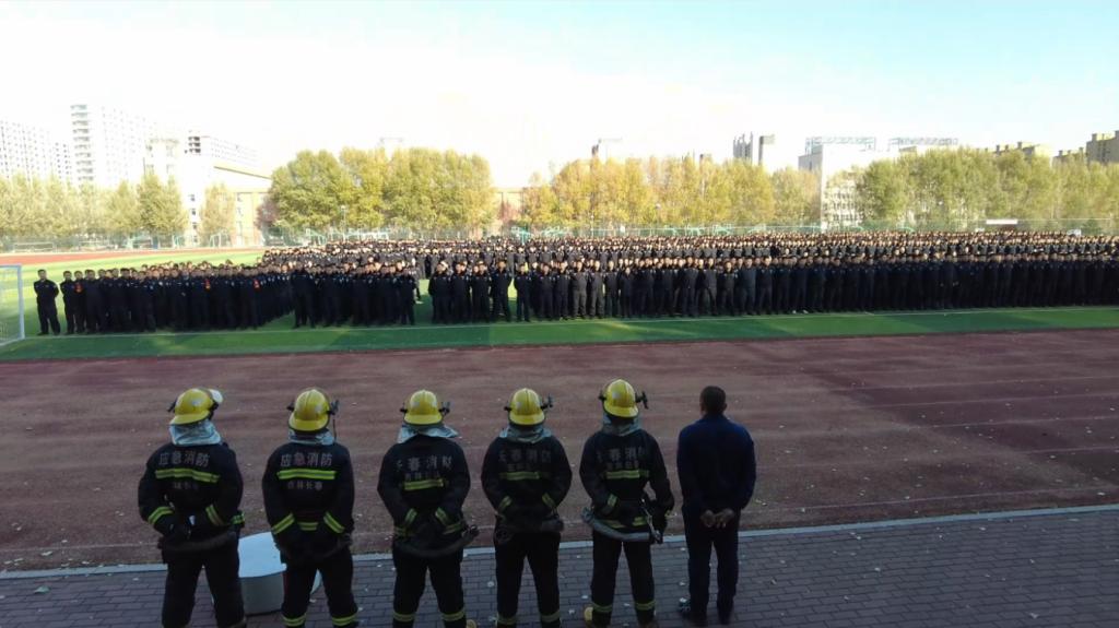 在第34个全国消防日来临之际,为提升全校师生消防安全意识与应急处置能力,保卫部联合政治处、学生工作部、后勤管理处开展校园秋季消防应急疏散逃生演练。演练邀请合隆政府专职消防队进行指导,共有3400余名师生共同参与演练。