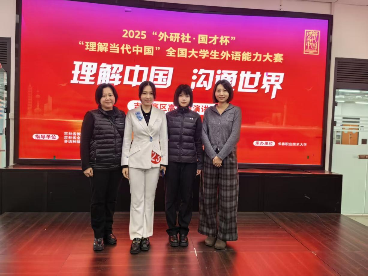 10月25日至26日,我院学生在吉林省2025“外研社·国才杯”“理解当代中国”外语能力大赛高职高专组写作与演讲赛项中,凭借扎实的外语功底、出色的表达能力和全面的综合素养,成功斩获两项金奖、三项银奖的好成绩。