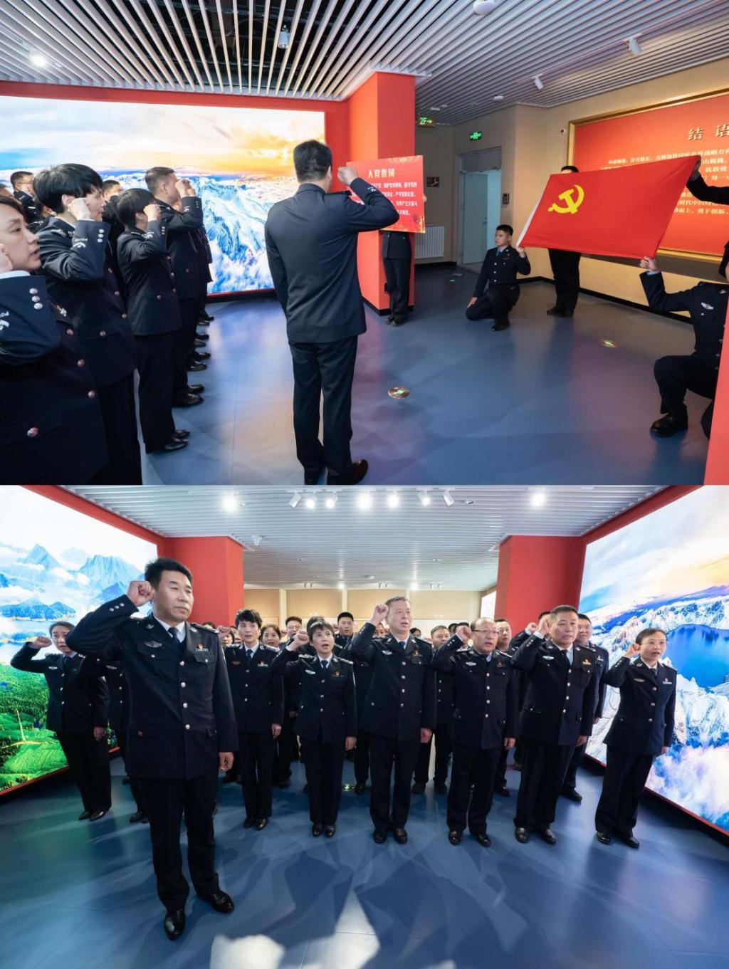 参加活动人员依次参观了九大展区28个单元。从清代边疆治理的恢宏叙事到闯关东移民的拓荒传奇,从反击俄日侵略的斗争史诗到东北抗联将士英勇抗日的忠魂壮举,大家在文物史料前驻足沉思,深刻体会这片土地上“坚韧不拔、百折不挠”的精神内核,感悟东北抗联将士在绝境中坚守信仰的壮举,不断在“三地三摇篮”历史长卷中汲取信仰,接受精神淬炼,凝聚办学治校的奋进力量。活动最后,全体党员干部在庄严的党旗前重温入党誓词,铭记初心使命。