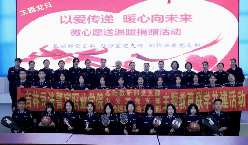 春风送暖,真情关爱。为庆祝“三八”国际劳动妇女节,基础部党支部、办公室党支部、纪检巡察党支部响应学院号召,积极开展“春暖花开季,巾帼绽芳华”活动。3月6日,举办“以爱传递,暖心向未来”主题党日活动,为共建团支部监狱警察学院J225041区队学生送温暖献爱心。