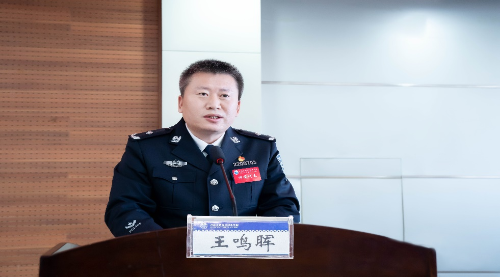 大会在雄壮的国歌声中开幕。学院党委副书记王鸣晖作了讲话。他对大会的召开表示热烈祝贺,向全体与会代表及同学们表示诚挚的问候和美好的祝愿!他对过去几年我院学生会工作给予了高度肯定,并向新一届的学生干部提出了三点要求:一要增强德才并重的志气,做涵养家国情怀的警院新青年。自觉用习近平新时代中国特色社会主义思想武装头脑、培根铸魂,做政治上的引领、学风上的示范、学业上的榜样、工作上的代表,不断筑牢政治忠诚,矢志不渝跟党走。二要增强文武双全的骨气,做努力追求卓越的警院新青年。践行“诚、智、律、毅”校训精神,勤奋刻苦学习,强壮精神脊梁,在实现第二个百年奋斗目标的生动实践中练就高强本领,成为一名堪当民族复兴重任的时代新人。三要增强情理兼修的底气,做一名爱校荣校的警院新青年。尊重学院的红色历史,珍视学院的良好声誉,传承学院的优良传统,维护好警院我们共同的精神家园,努力打造同学们想得起、找得到、靠得住、信得过的学生会组织形象,为学院高质量发展贡献青春力量。