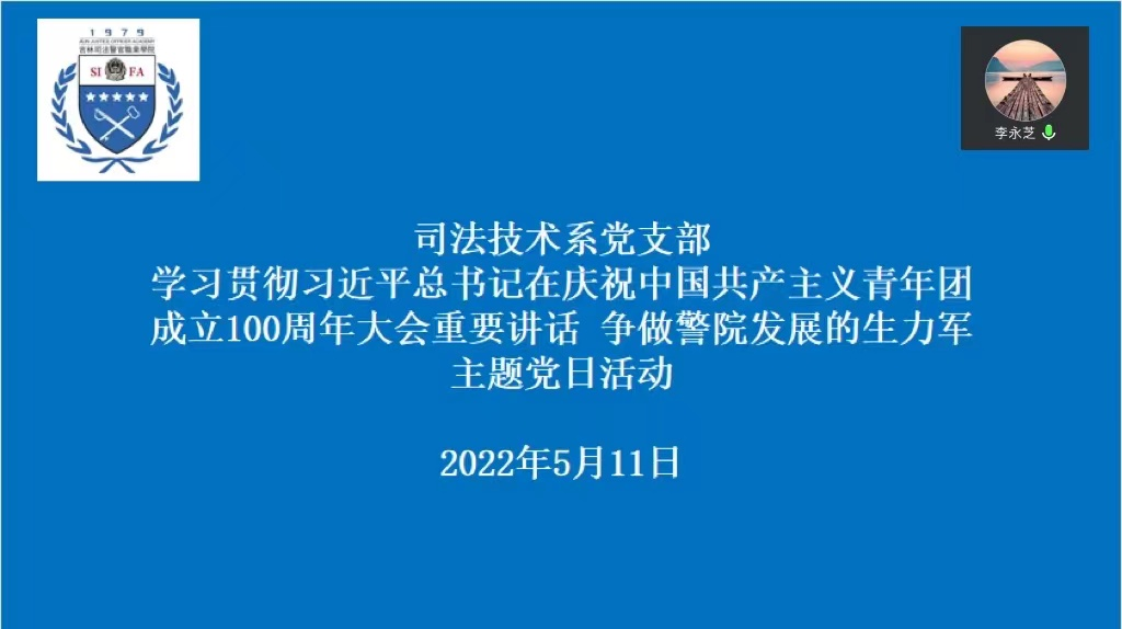 5月11日,为学习贯彻习近平总书记在庆祝中国共产主义青年团成立100周年大会上重要讲话,司法技术系党支部开展“学习习近平总书记重要讲话,争做警院发展生力军”主题党日活动。会议由党支部书记李永芝主持,全体教师参加会议。