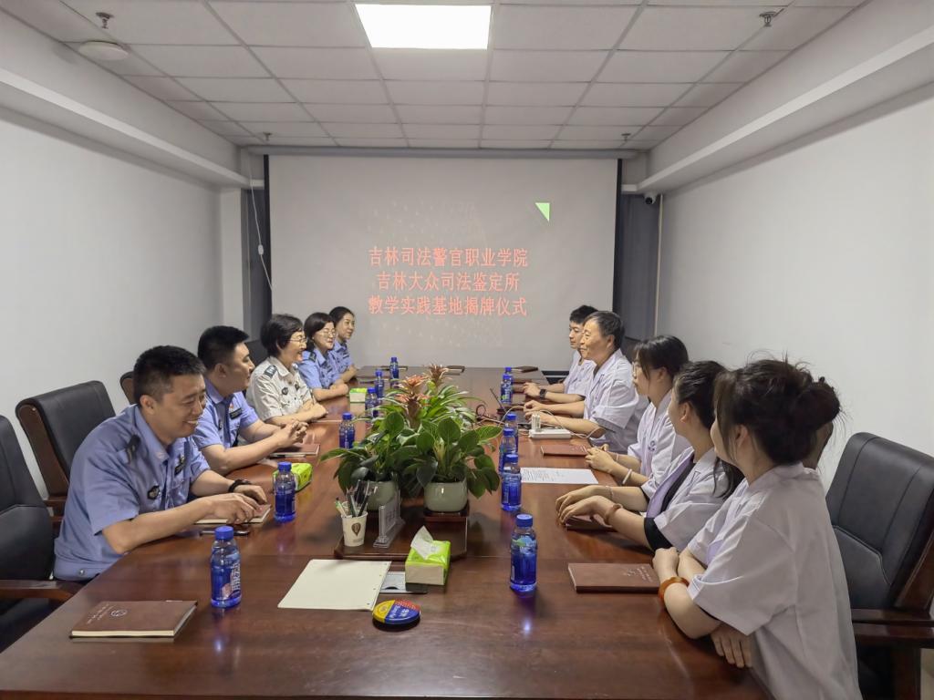为深入贯彻落实《吉林省高等教育高质量发展三年行动计划(2025-2027年)》工作要求,深入推进产教融合、加强与行业、企业合作,不断拓宽实践教学基地,提升人才培养质量,近日,学校司法技术学院院长李永芝,教务处副处长朱泓宇及司法鉴定技术专业全体教师与吉林津科司法鉴定中心、吉林千迈司法鉴定中心、吉林大众司法鉴定所等三家机构开展教学实践基地揭牌仪式。