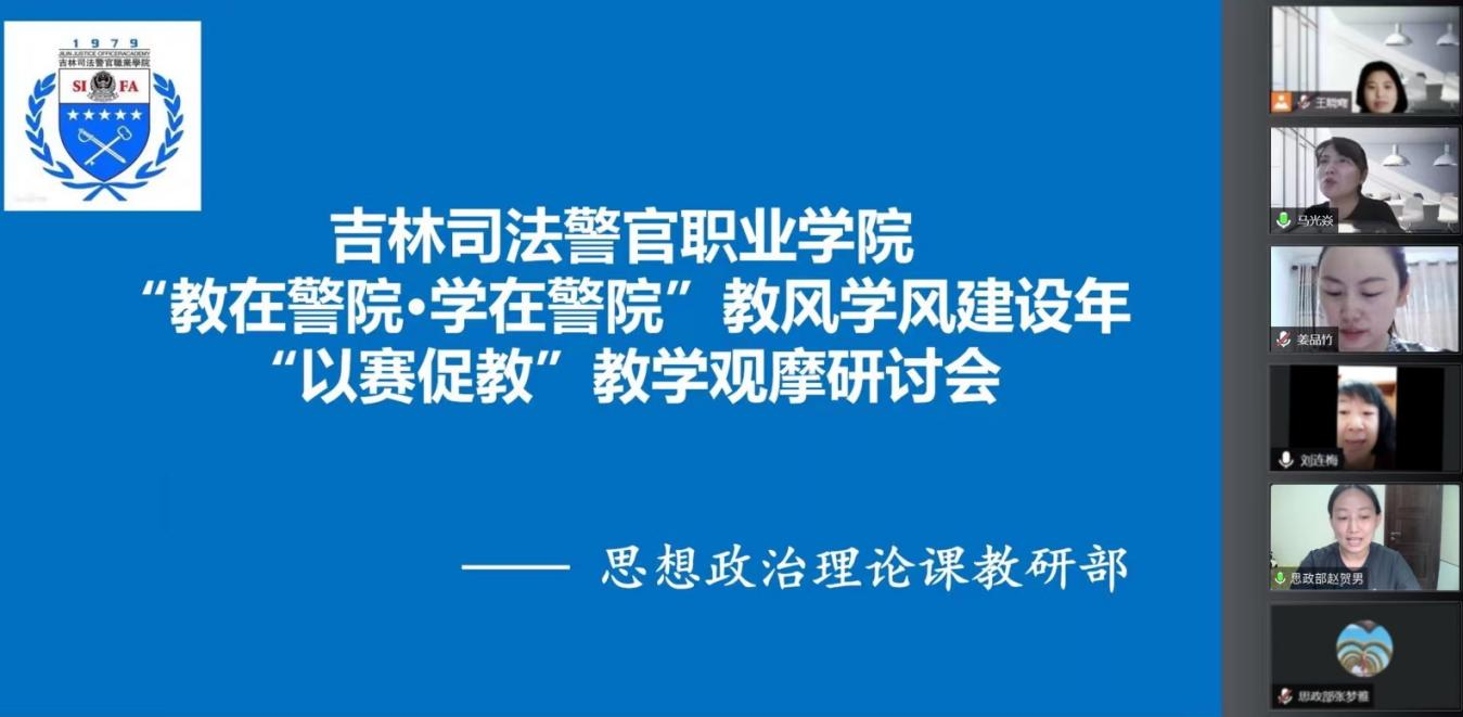 为深入学习贯彻全国教育工作会议、全国职业教育大会精神,深学笃行新职业教育法,落实学院“教在警院·学在警院”教风学风建设年实施方案,积极备战吉林省职业院校技能大赛教学能力比赛和校赛,5月29日下午,学院思想政治理论课教研部开展“教在警院·学在警院”教风学风建设年“以赛促教”教学观摩研讨会活动,思想政治理论课教研部全体专兼职教师参会,校外长春工业大学马克思主义学院院长马光焱教授出席,会议由思想政治理论课教研部副主任王晓骞主持。