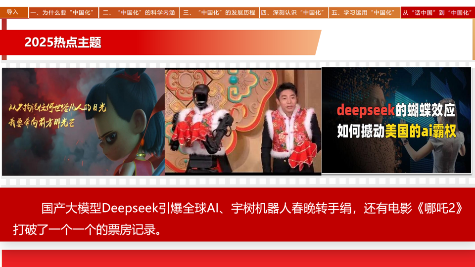 会上,与会教师梳理本门课程结构框架,围绕马克思主义中国化时代化这一重要内容展开深入研讨。大家一致认为,教学中应紧密结合国产deepseek引爆全球AI、宇树机器人春晚转手绢以及电影《哪吒2》票房大卖、比亚迪车辆升级不加价等热点新闻事件,不断增强课程的吸引力与实效性,让学生深刻理解马克思主义在当今社会的强大生命力。