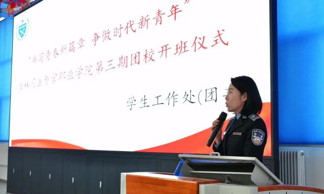 全体学员共同观看了共青团中央优秀团组织、优秀团员事迹展播,学习先进典型,凝聚前进动力。监狱警察学院学生吴海玉代表第三期团校全体学员作表态发言,承诺会严格遵守团校各项规定,努力学习、拼搏向上,为早日成为一名共青团员而努力奋斗。